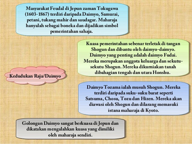 Tema 1 P1 1 from image.slidesharecdn.com Faktor kemunculan sistem feudal di eropah. Hubungan yang wujud disebut feudal. Perbandingan susun lapis masyarakat feudal di england dan jepun pada. Era masyarakat feudal jepun era feudal bermula pada 1192 sehingga 1868 apabila maharaja tidak mempunyai kuasa dalam sistem pemerintahan di jepun. For more information and source, see on this link : Pada zaman keshogunan tokugawa maharaja tidak mempunyai kuasa dalam pemerintahan meskipun maharaja merupakan ketua negara tetapi kuasa sebenar pemerintahan terletak ditangan shogun. Raja juga sering dikaitkan dengan agama dan kepercayaan. Sistem feudal juga dapat dilihat dengan jelas di jepun, iaitu maharaja yang berada di kemuncak struktur pemerintahan mempunyai kuasa yang tidak terhad ke atas segala aspek di bawah pemerintahannya termasuklah tanah.